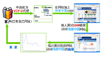 该模式主要是在您网站上放一个有我公司标志的链接,当客户通过该链接进入我公司电子商务平台时,系统会自动记录您的代理号, 在我们平台上在线购买的虚拟主机、企业邮局、数据库、VPS、云主机产品,都会自动添加到您的代理号之下,并按一定的比例给您支付佣金。 您可以进入我们的管理后台查看财务记录,状态一目了然。现在就开始行动吧,您的网站/微博就是一个好的起点!